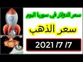 سعر الدولار في سوريا اليوم الاربعاء 7-7-2021 سعر الذهب في سوريا اليوم و سعر صرف الليرة السورية