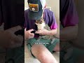 My little cat's nails have gotten very long, so we're cleverly trimming them.😜😁#cat #pets #funnycat