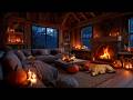 Slow Jazz Music in Cozy Autumn Cabin Ambience 🍂 Fireplace Sounds & Night Rain to Study, Sleep, Relax