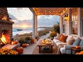 Calm November Fall Morning at Outdoor Coffee Shop Ambience🍂Relaxing Jazz Background Music to Working