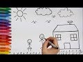 Desenhar e Colorir uma Casa com Piscina 🏡👙🌊🏊🌞🌈 Desenhos para Crianças