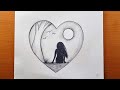 Desenhos fáceis / Tutorial fácil de desenho de paisagens / Desenhar uma rapariga junto a uma árvore