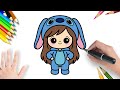 Como Desenhar uma Menina Fofa com Pijama do Stitch | Passo a Passo