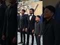 #Dhanush attends #TheGrayMan US premiere with sons Yatra and Linga.red carpet with his handsome sons