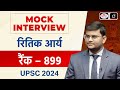 UPSC TOPPER 2024 | Ritik Arya| Rank 899| Mock Interview | Drishti IAS