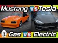 Tesla v/s Mustang .. Electric car v/s Gas .. Who will win? Who is faster?