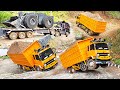Lewat Jalan Lumpur Mobil Truk Tronton Fuso 220ps, Isuzu Giga, Hino 500 Muatan Berat Oleng Muat Tanah