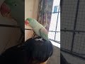 Fluffy, adorable Indian Ringneck parrot singing and chirping. Little bird wants some treats
