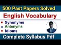 One paper msqs english vocabulary | synonyms| antonyms | idioms | ppsc/fpsc one paper mcqs syllabus