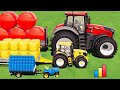 • GIANT TRACTOR OF COLORS ! MINI & BIG HAY BALE TRANSPORT with COLORED TRACTORS ! HAY BALING & LOAD!