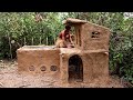 Build An Amazing Primitive Mud House Attaching 3 Tiled Roof Hut - Making Round Hut Under Tree House